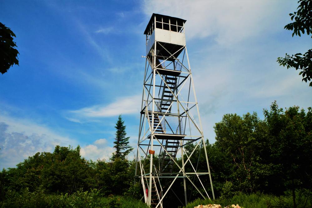 The Azure Mountain Trail ascends 1000 feet through a mixed hardwood forest with great potential for wildlife viewing. The summit includes a 35-foot fire tower that affords 360-degree views of the St. Lawrence River Valley and Northern Adirondacks. From the summit, views of the northern Adirondack boreal forest are stunning and on a clear day you can see the peaks of Whiteface, Colden, Gothics, Marcy and Algonquin. On the southwest end of the summit area, an impressive boulder, called a "glacial erratic" sits perched on the edge of a rocky outcrop.