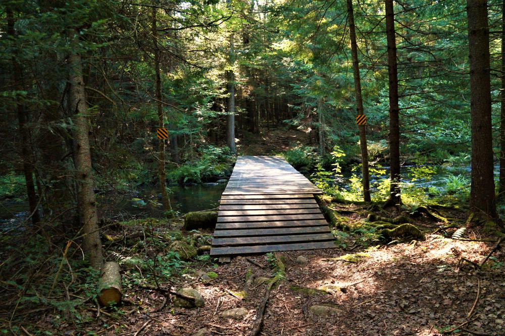 The trail is narrow. Definitely wear shoes with good tread as there are some spots (when wet) are slippery. Bring DEET bug spray.