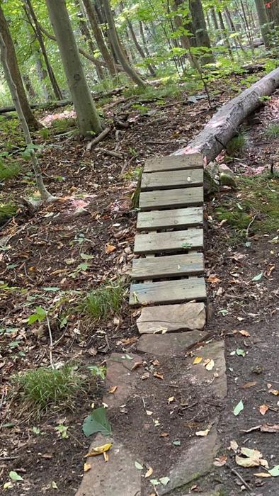 This multipurpose trail is also used by the ROTC and has elements of an obstacle course along the trail.