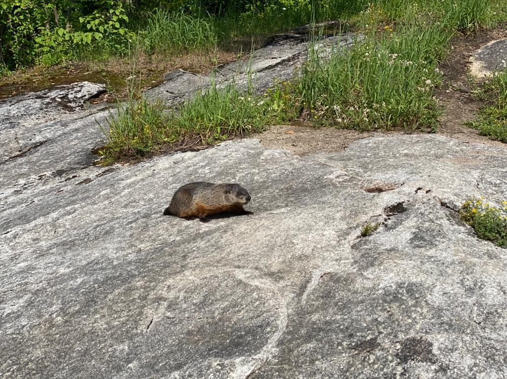 The trail heads southwest around the gate and is well brushed out. There are some white/green and blue trail markers along the trail. The trail is fairly level and is suitable for year-round use, including snowshoes and cross-country skiing. There are some wet spots along the trail, but there have been recent improvements made to navigate these. Recently the entire circumference of the field has been mowed and would allow an extended outing here. The field is growing back to its natural state and is very attractive to wildlife.