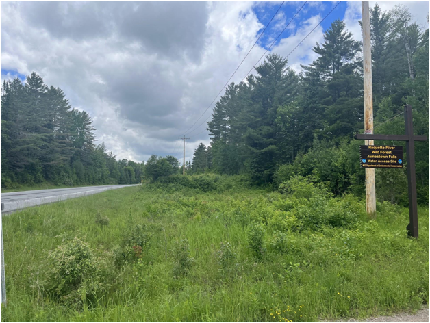This small lot is the perfect spot to stretch your legs on a long drive while enjoying the peaceful view and distant roar of Jamestown Falls. There is an access road that is fully drivable by car in the warm weather months that brings you to a parking area at the water’s edge of the Raquette River. If you wish to explore the area more, there is a boat launch for small craft and canoes, allowing for a serene paddle in the flatwater up close to the base of the falls.