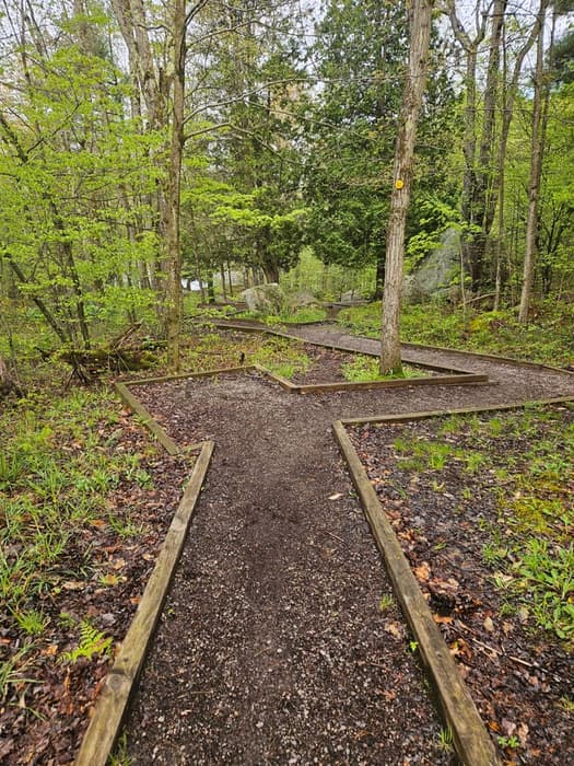 From the trailhead on NY-27, the trail extends for 0.5 miles along a wide and flat path to the top of the falls. Though unpaved, this first section of the trail accommodates wheelchairs.