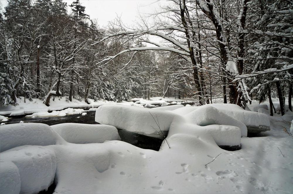 From New York State Rt. 3, turn onto St. Lawrence County Rt. 61. Follow this continuing straight onto Wanaekna's Main Street. The trailhead parking is located on the right before the bridge. Another entrance can be found off on Inlet Road, off of Rt. 3, marked with DEC signage "Five Ponds Wilderness Area." Continue along Inlet Road until reaching a parking area with a canoe launch at the end. Inlet Road is often used as a second car drop point if the trail is going to be traversed rather than an out and back.