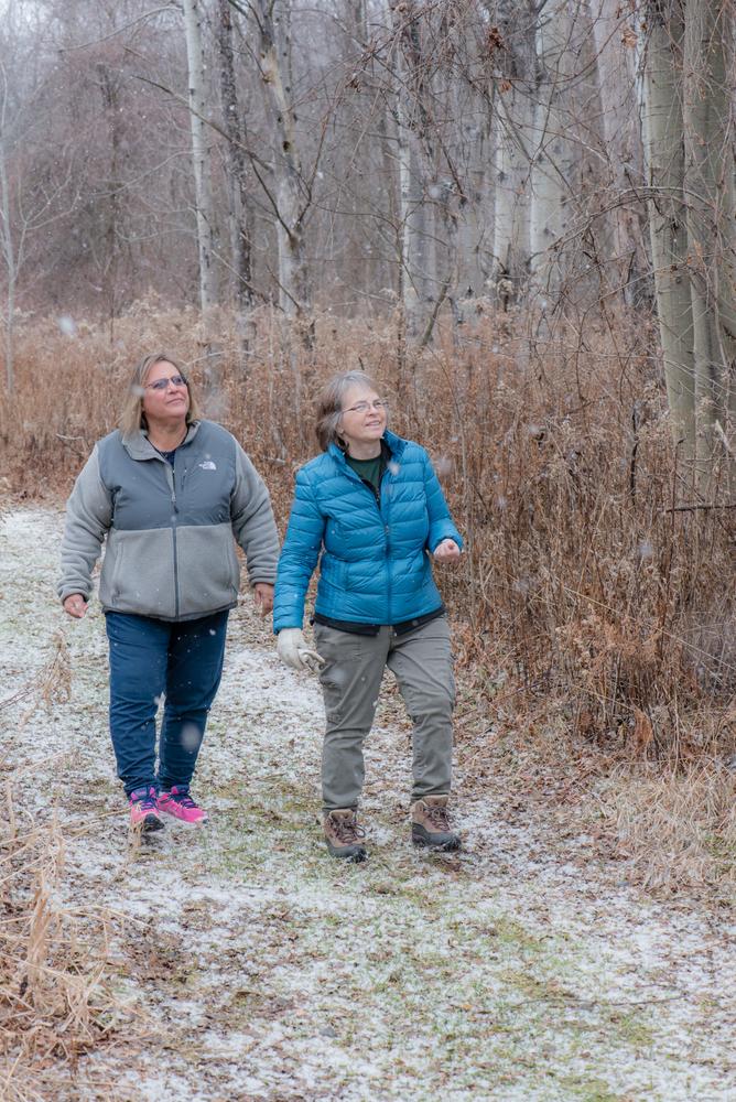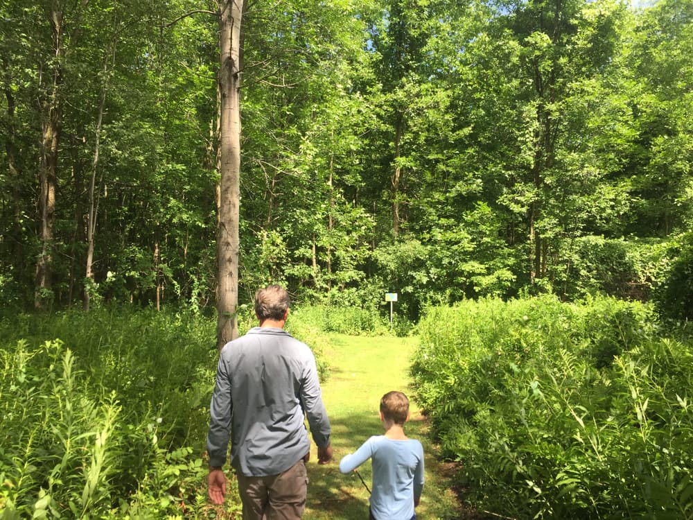 Trail maps are available in the nature center or at the kiosk to the right of the building. All trail intersections are marked with a map and the markers on the trees match the trail colors on the map, so this is a great place for beginners to hike!