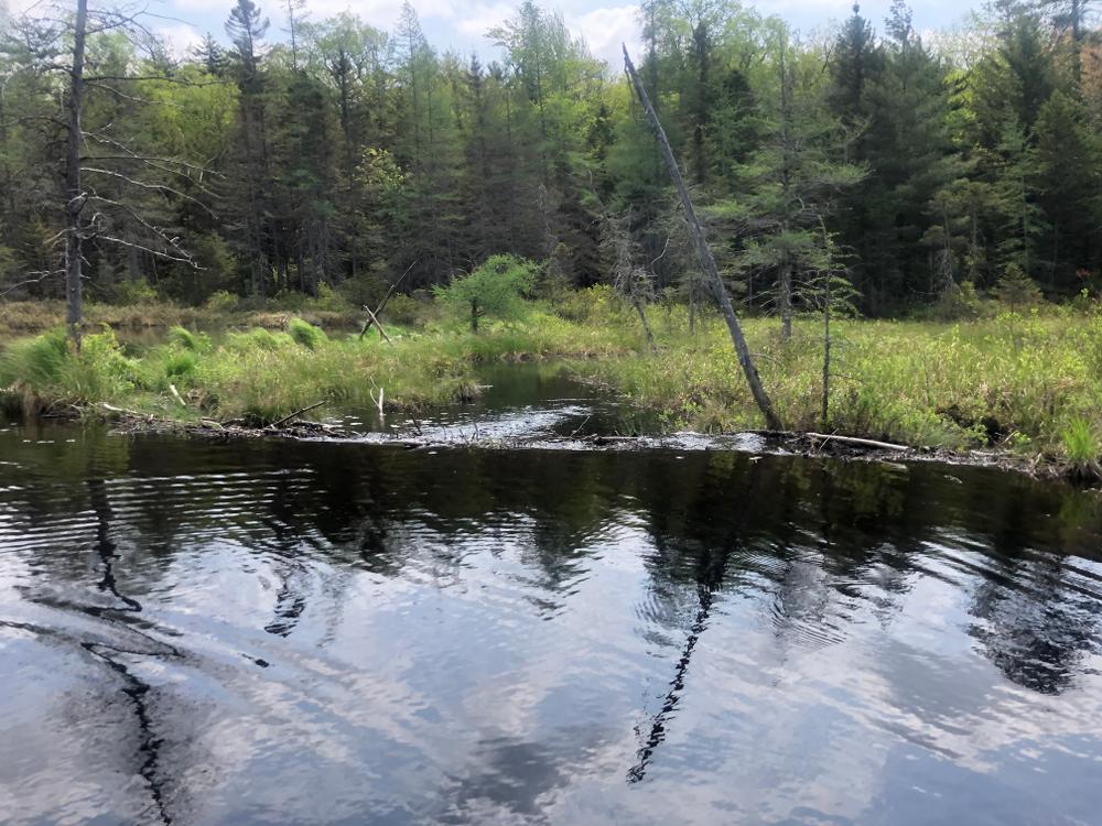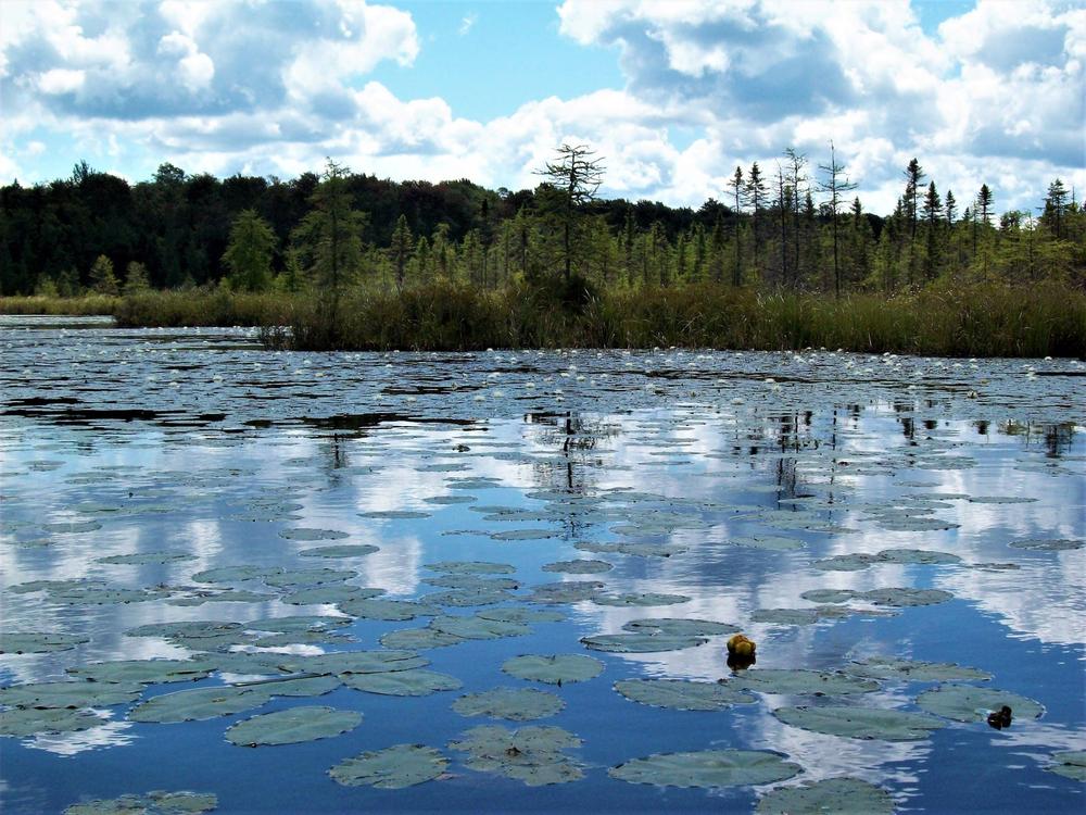 This pond is on the 30,000-acre Tooley Pond Conservation Easement Tract. The distance following the shoreline is approximately 1.4 miles, but you can paddle as much or as little as you like. The picturesque pond has plenty of great views, and exploring the shallow outlet at the southern end of the pond is sure to reveal some unique flora and fauna. Water lilies, purple pitcher plants, and even bog cranberry can often be found around the narrow outlet. Waterfowl and occasionally loons are seen as well.