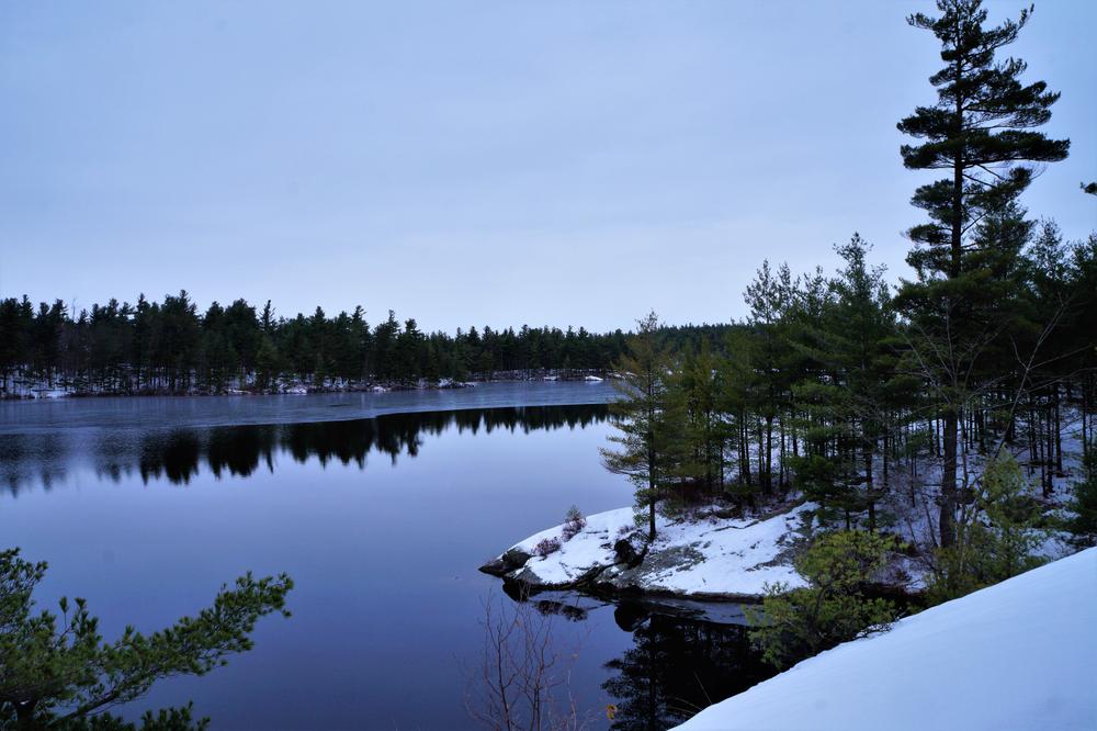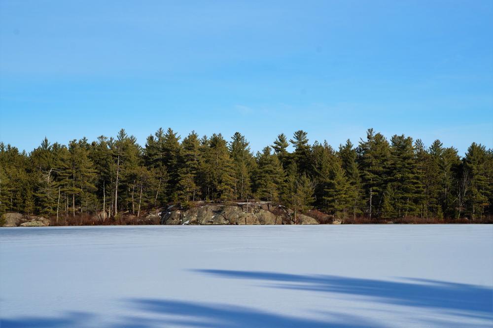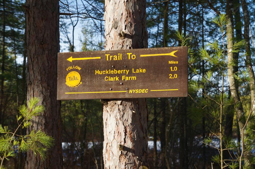 Talcville to Huckleberry Lake Trail (1.4 miles) - This yellow-marked trail travels north from the Ames Road West Trailhead to the lean-to shelter on the southeast shore of Huckleberry Lake. The last 0.25 miles of trail pass through a stand of native white pine ranging up to 30 inches in diameter. When you reach Huckleberry Lake on this trail, you will be standing on the west boundary of the State Forest. This line runs approximately due north across the lake from this point. Huckleberry Lake is heavily used throughout the season and is a popular fishing location.